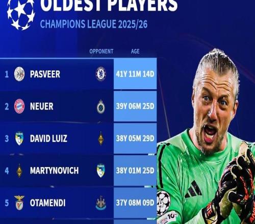 北京时间10月25日,德转统计出了本赛季至今欧冠出场最年长的10名球员,阿贾克斯的门将帕斯维尔第一,诺伊尔第二,目...
