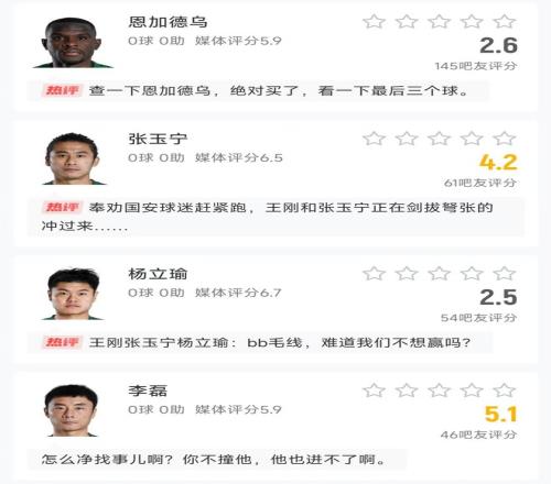 再就是李磊,他在本场比赛送点,导致比赛走向改变的同时,李磊共3次被对方球员过掉,而这一数据也是全场最多,而在赛后,李磊也是遭到不少球迷的批评,认为他状态下滑的严重,现在在场上仅仅是态度不错。
