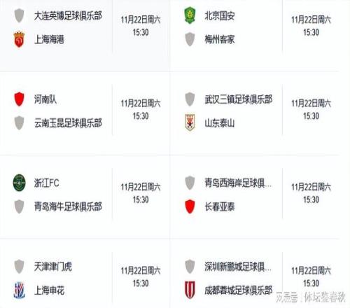 本周末,本赛季的中超联赛将迎来最后一轮。22日下午15点半,8场比赛将同时开打。这不仅是一轮普通的联赛,而是将决定本赛季的冠军归属,以及谁将成为最后一个降级球队的生死大战。