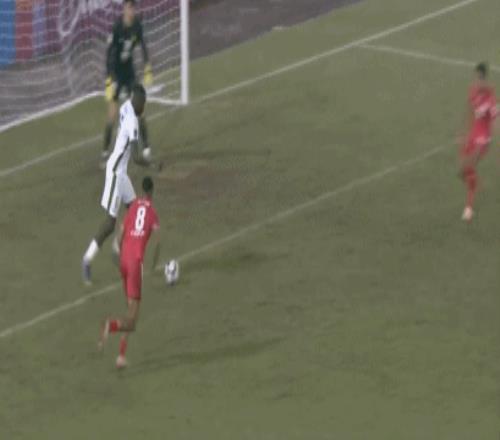 第54分钟,恩加德乌禁区内横传,球打在莱奥-阿图尔的身上击中门柱,张健智随即解围。