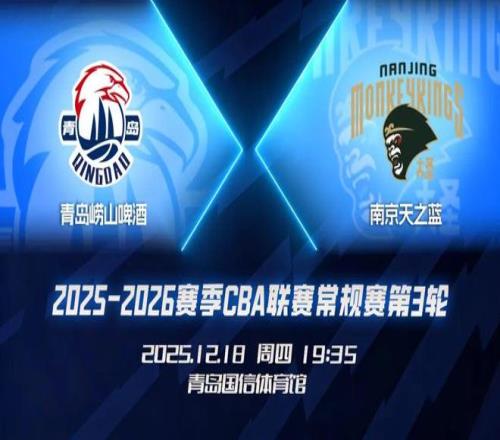 明晚19:35,2025-2026赛季CBA联赛常规赛第3轮,青岛崂山啤酒继续坐镇主场迎战南京天之蓝,期待球队再接再厉,打出精彩表现!欢迎球迷朋友现场观赛,大家也可以通过抖音、青岛电视台三套观看比赛直播,一起为球队加油助威!