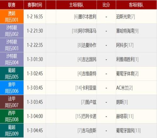 其他赛事比分: