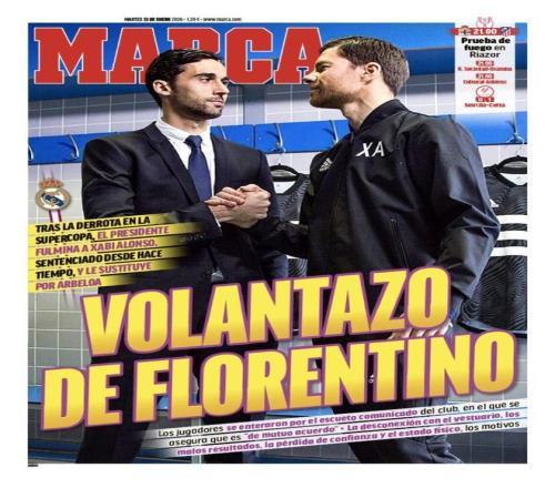 在皇马宣布哈维-阿隆索下课之后,《马卡报》进行了一系列的调查。罕见的是,9成球迷认为皇马主席弗洛伦蒂诺犯了错,只有6%的球迷认为阿隆索应该为皇马目前的状况负责。