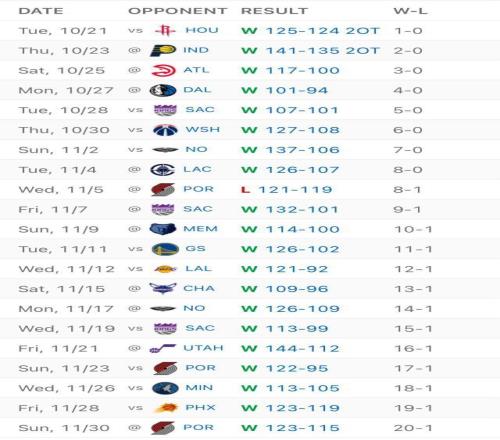 历史第四队!雷霆开季20胜1负此前三队有两支夺冠